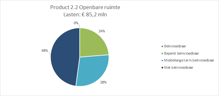 Dit betreft de aanleg, onderhoud en beleid van openbare wegen (€ 6,4 mln), aanleg en onderhoud van de openbare ruimte (€ 4,7 mln), onderhoud aan civiele kunstwerken (€ 2,5 mln), integrale ontwerpmethode openbare ruimte (€ 2,1 mln), aanleg en onderhoud van groen en speelplaatsen (€ 1,5 mln), tractie bedrijfsmiddelen (€ 1,4 mln), beleid en onderhoud waterhuishouding en riolen (€ 1,3 mln), zwerfafval (€ 0,3 mln) en huisvesting buitendienst (€ 0,3 mln).