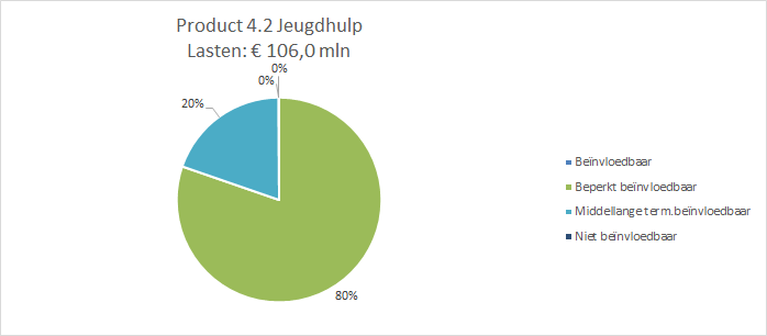 De beperkt beïnvloedbare kosten betreffen kosten voor Specialistische jeugdhulp (€ 80,1 mln), PGB jeugd (€ 3,1 mln), uitvoering jeugdteams (€ 0,8 mln), capaciteit noodzakelijke maatregelen (€ 0,6), jeugdteam huisvesting en ict (€ 0,3 mln) en opvoedondersteuning (€ 0,2 mln),