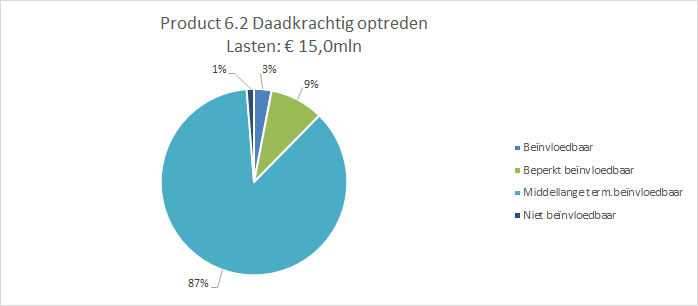 De beperkt beïnvloedbare kosten betreffen budgetten voor straattoezicht (€ 0,4 mln), gebruikstoezicht (€ 0,4 mln), team wijkgerichte overlast (€ 0,2 mln), het interventieteam (€ 0,3 mln) en beleid Openbare orde en veiligheid (€ 0,1 mln).